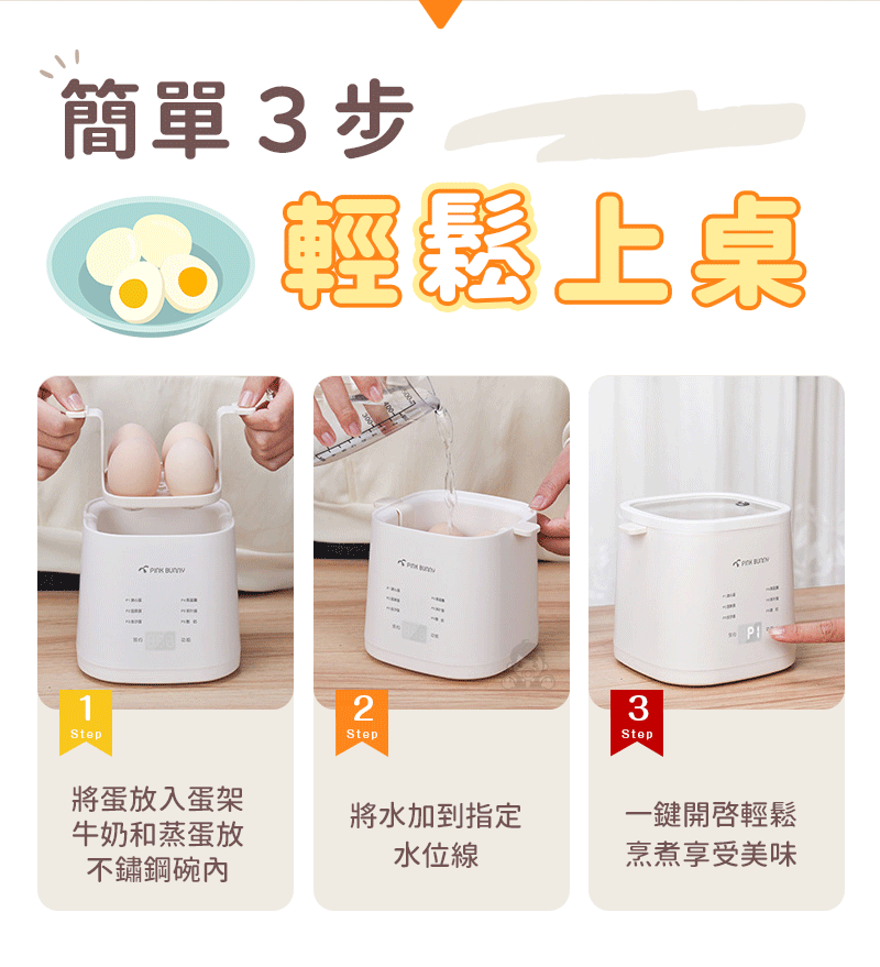 15分鐘前Pink Bunny智能煮蛋機智能控溫烹煮,營養美味輕鬆上桌 - Pink Bunny智能煮蛋機2入組 NT$1990